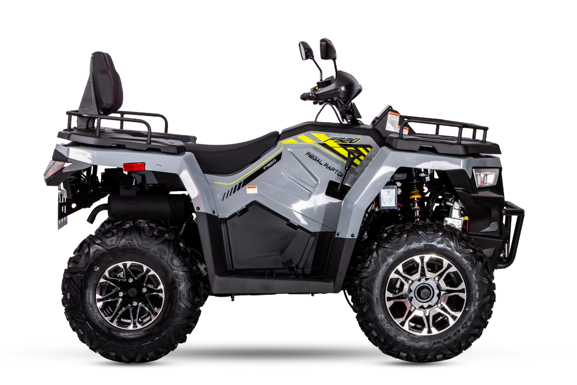 Güçlü ve Dayanıklı ATV Arazi Aracı ile Zorlu Şartlara Meydan Okuyun Regal Raptor F320, zorlu arazi koşulları için özel olarak tasarlanmış, güçlü performansı ve dayanıklı yapısıyla öne çıkan modern bir ATV arazi aracıdır. 275 cc sıvı soğutmalı, 4 zamanlı motoru, 21.4 HP güç ve 23 Nm tork üreterek her türlü arazide üstün performans sağlar. CVT şanzıman sistemi, her seviyeden kullanıcı için kolay ve akıcı bir sürüş deneyimi sunar.
